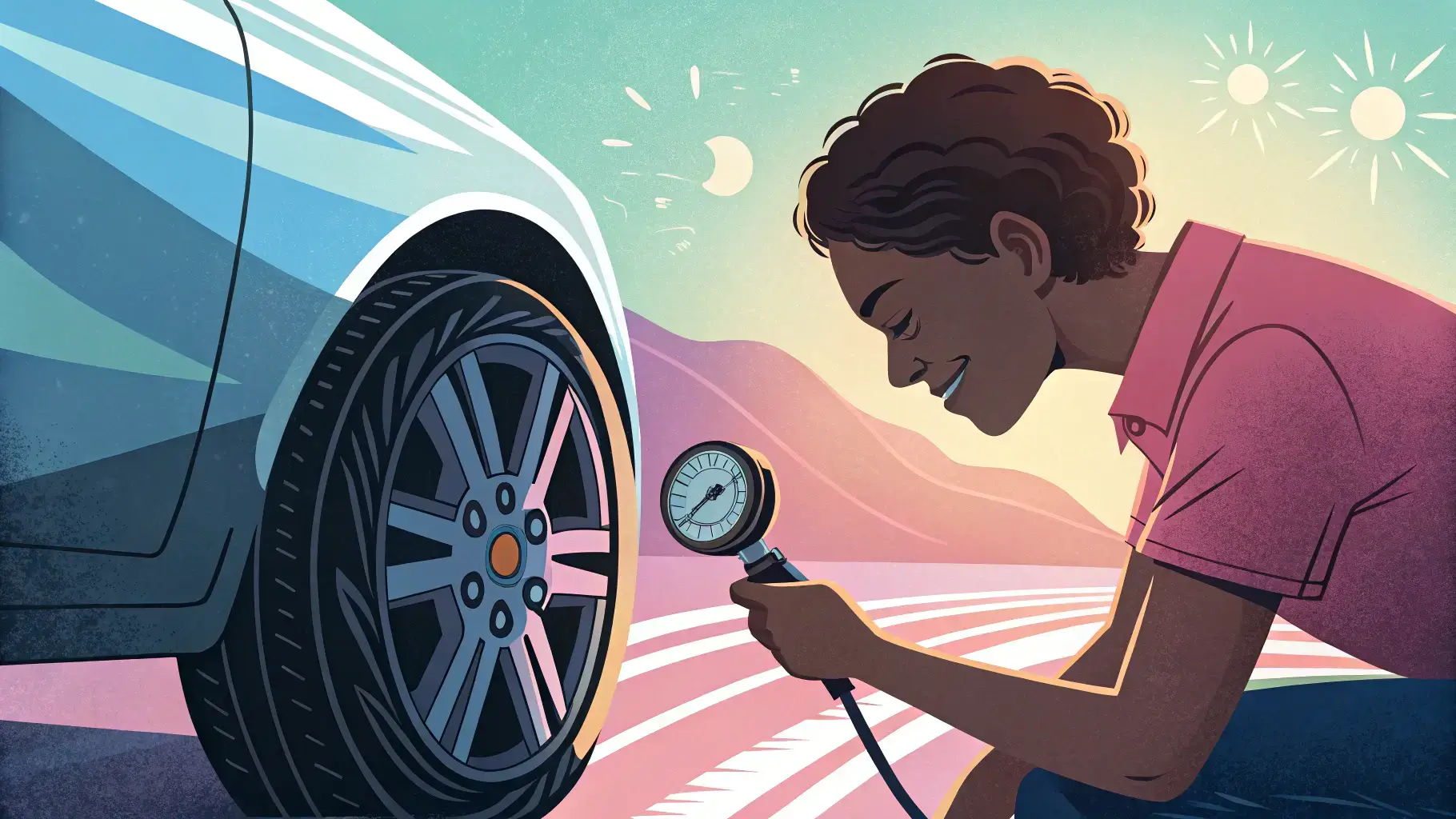 - 공기압 주 1회 점검 : 여름철에는 기온에 따라 공기압이 변화하므로, 최소 주 1회는 공기압을 점검하세요. 차량 제조사 매뉴얼에 표기된 적정 공기압 수치를 기준으로 맞추는 것이 좋습니다.