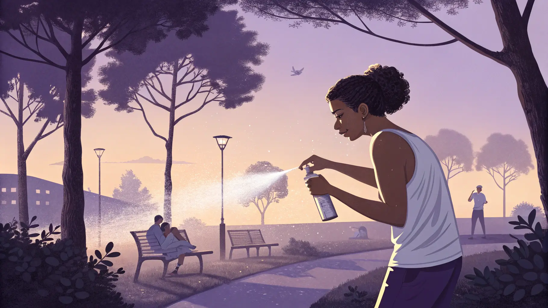 - 디에틸톨루아미드 → 가장 일반적인 성분으로, 모기의 후각 수용체를 차단해 인간을 인식하지 못하게 만듭니다. 지속력도 강력하지만 피부 자극 가능성 있음.